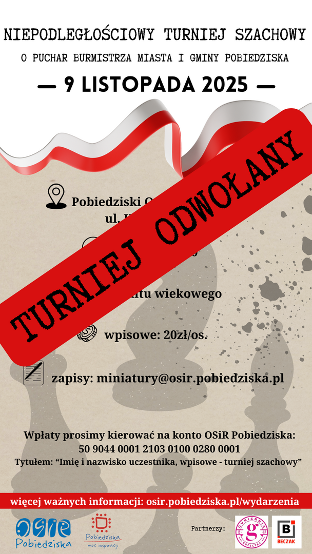 ODWOŁANY - Niepodległościowy Turniej Szachowy – 9 listopada 2025 r.